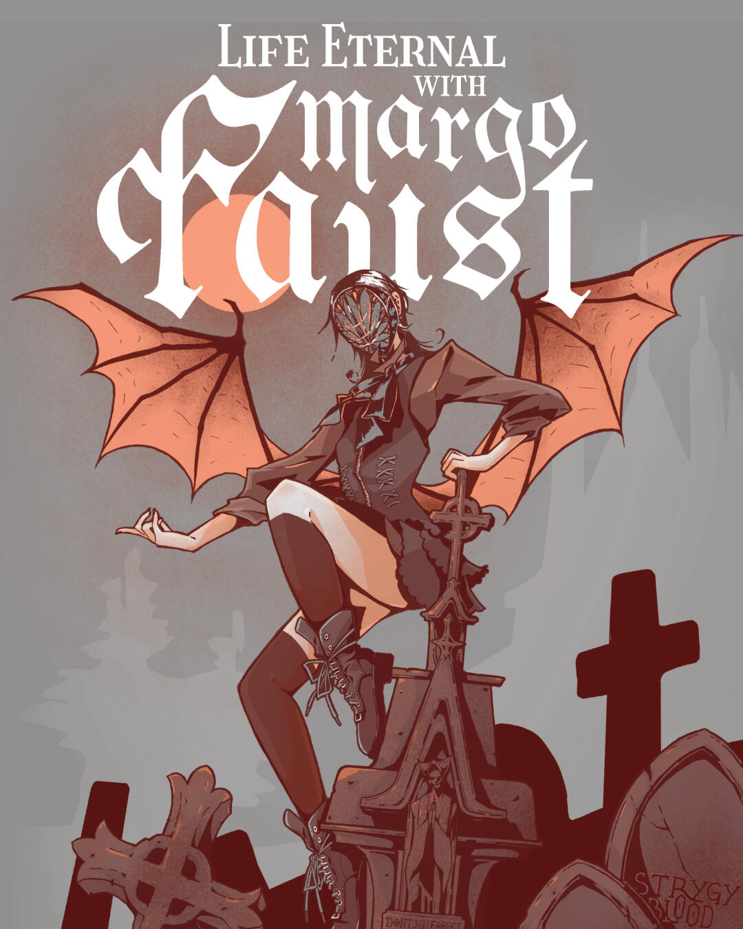 Margo Faust was once a regular decular secular office girl but after contracting vampirism, was laid off and doomed to wallow away scavenging for money and relevance in the dark basements of pop culture conventions as an indie comic book writer and illustrator.